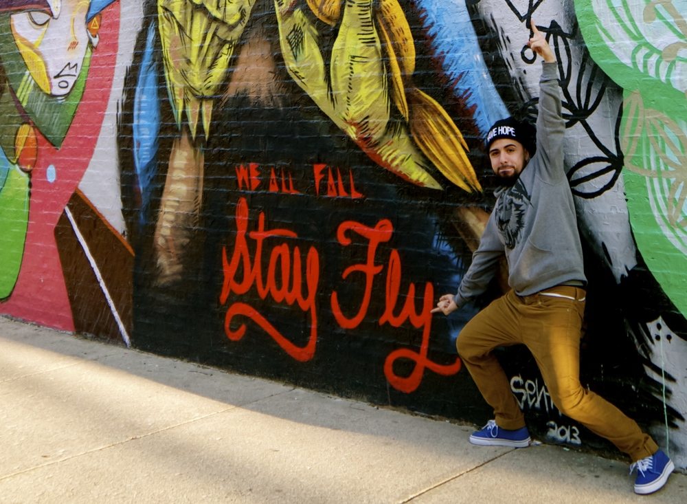 He quickly found the classroom was not the best place to foster his motto ‘stay fly.’ Instead, he hit the pavement with his portfolio and found galleries excited to work with him, including Galerie F. Through these new connections he began to collaborate with JC Rivera, Tubsz, and Ruben Aguirre, developing his technique and cementing his imagery. He has been making his mark from South Lawndale to Ravenswood and everywhere in between. The locations were recently documented via Google Maps.