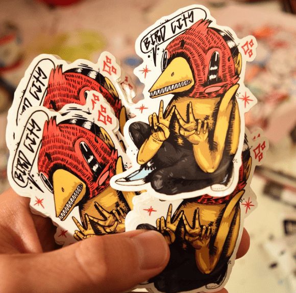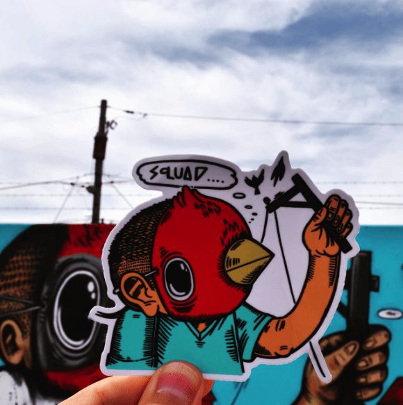 That is certainly something Sentrock took to heart. He is a prolific artist, constantly sketching and developing motifs including ‘Stay Fly’ and ‘Stay Free’. He explains, “the bird mask is symbolism to freedom or escapism. The ability to fly away is something I always use my art to do, get away or escape. I think a big part of it started from how I grew up, seeing family members and friends locked up throughout my childhood always inspired me to stay free.” Although he does not recall when he first came up with the idea, the masks have certainly been used more consistently in the past 3 years. This boy does not have a name per say, “but I would say I call all variations ‘Bird City Saint’ or someone who wants to fly away and do good.”